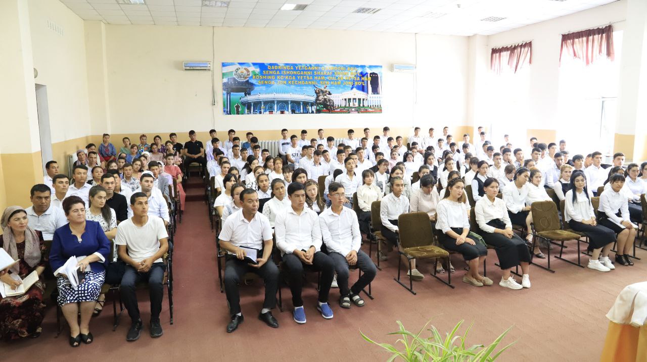 Сўз аввалида туман раҳбари ёшларнинг катта йўл бошида турганлиги, бу йўлда адашмасликлари учун муносиб касб танлаш лозимлари, тарбияли борасида намунали бўлишлари, шундагина жамият ўз ўрнини топа олишлари ва фаровон ҳаёт кечиришларини таъкидлаб, битирувчиларга келажакда катта марраларни эгаллашларини тилади.