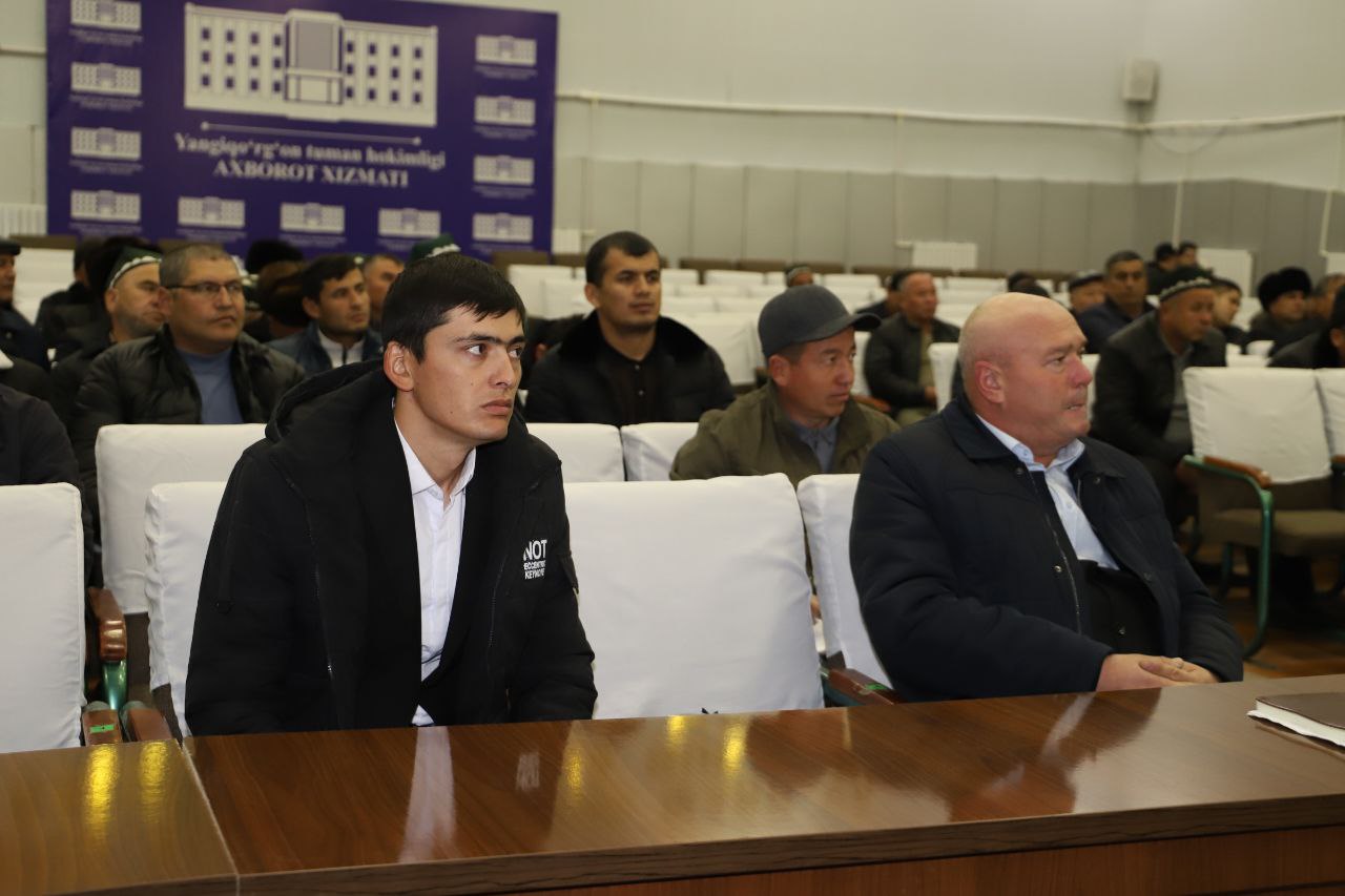Ўқув-семинарида тумандаги қишлоқ хўжалигига хизмат кўрсатувчи ташкилот ва корхоналари раҳбарлари, кластер корхоналари ҳамда барча йуналишдаги фермер хўжаликлари раҳбарлари иштирок этдилар.