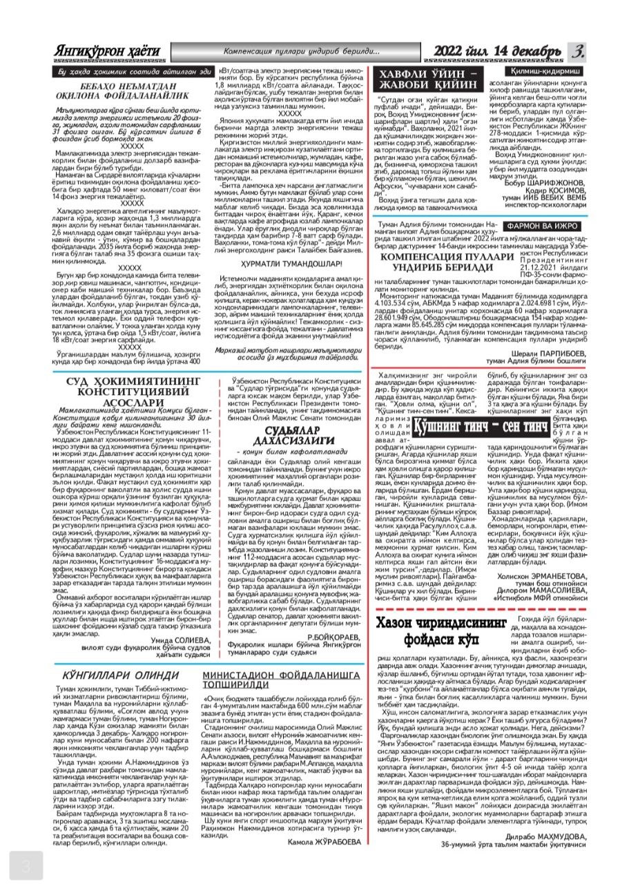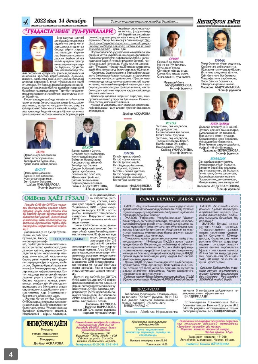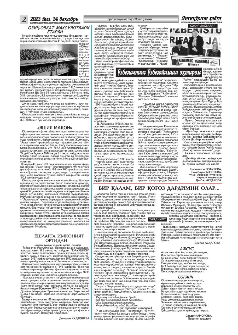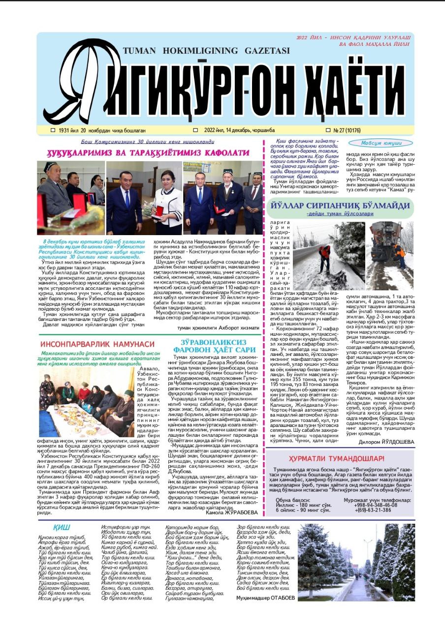 Туман ҳокимлиги муассислигидаги нашр - "Янгиқўрғон ҳаёти"нинг навбатдаги 27-сони чоп этилди.