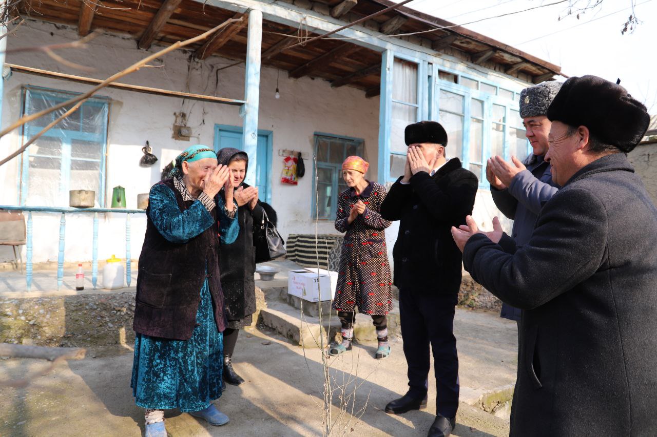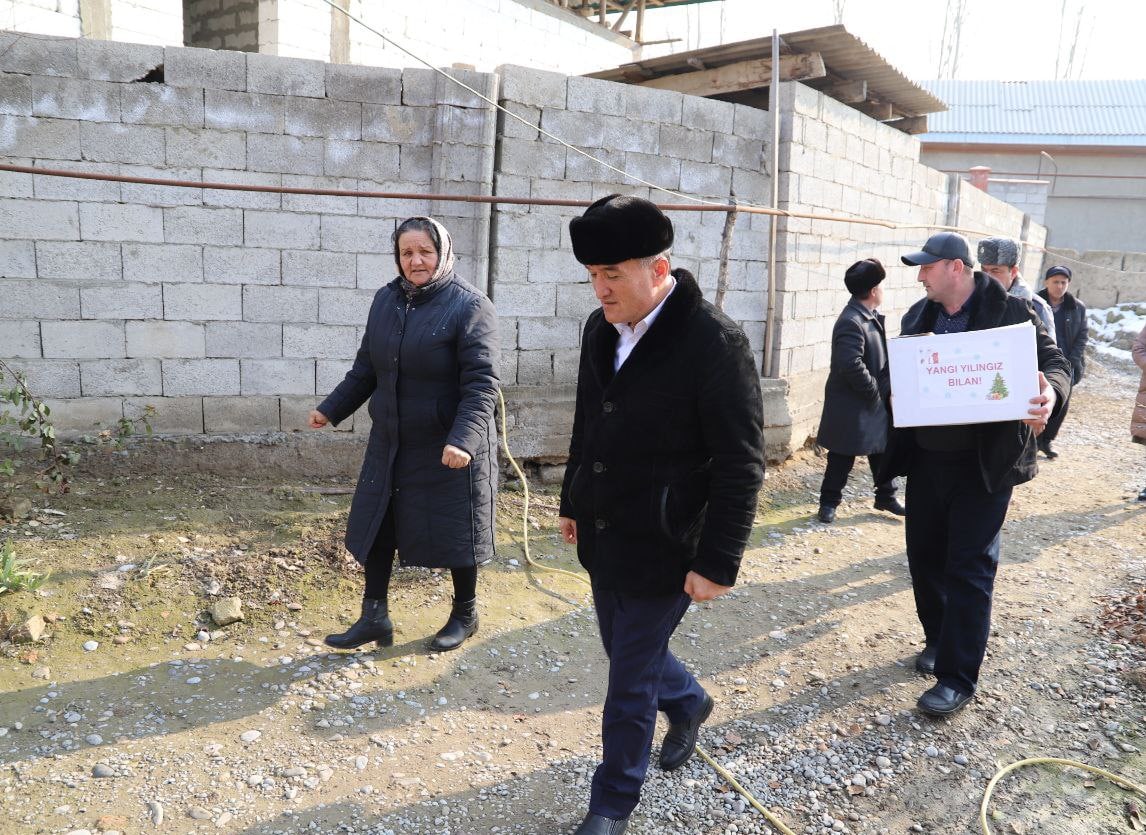 Мулоқот давомида хонадон эгаларини Янги йил байрами билан табриклаб, озиқ-овқат маҳсулотлари берилди.