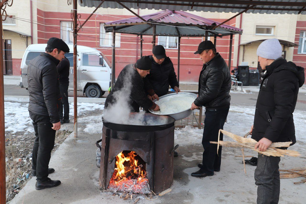 Шу боис туман ҳокимлигининг ташкилотчилигида улар учун ош тайёрлаб бериш жараёнлари давом этмоқда.