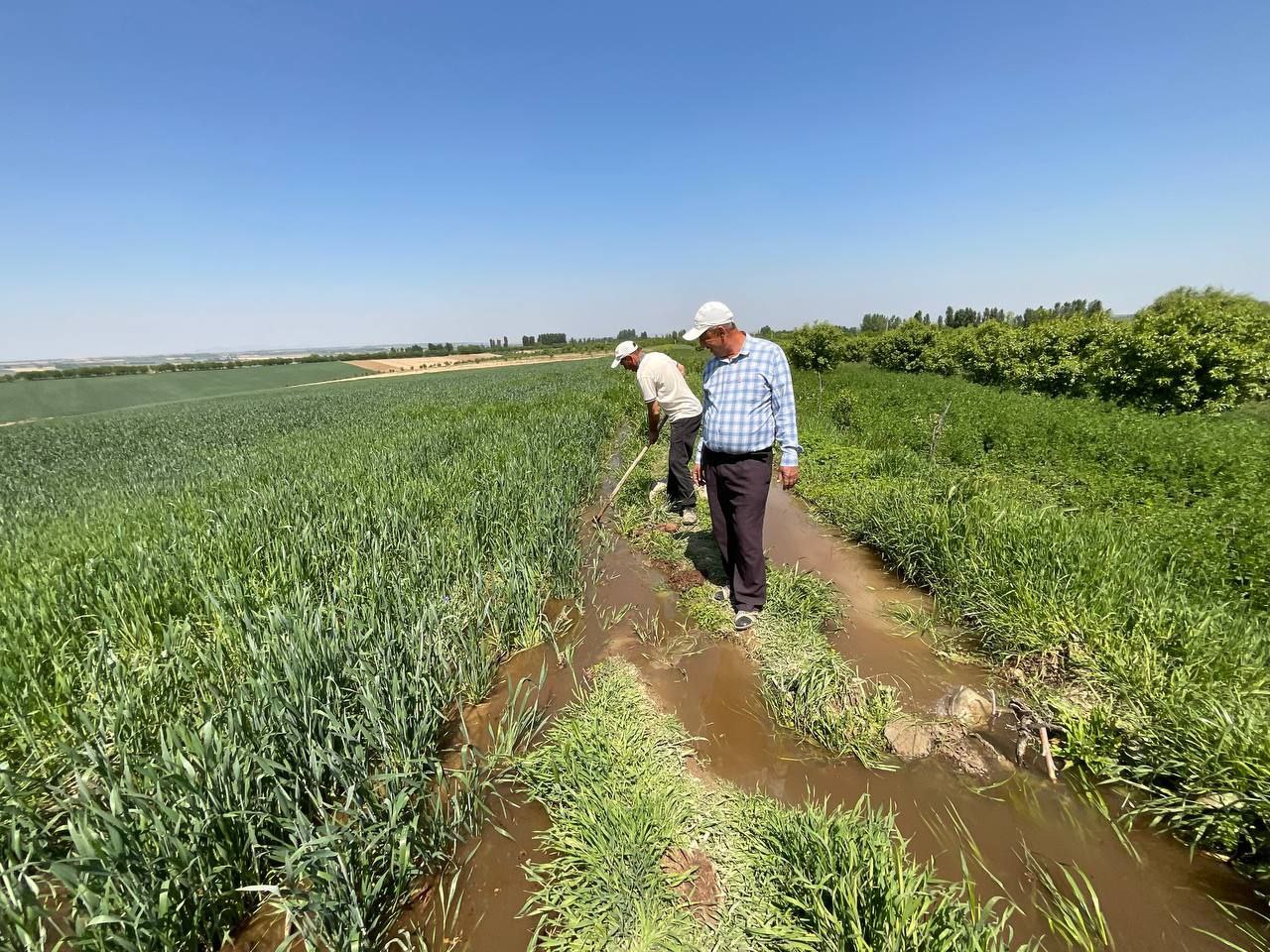 Мазкур фермер хўжалигининг 28 гектарида ғалла парваришланмоқда. Туман раҳбари ғалла майдонини суғориш бўйича кўрсатмалар берди.