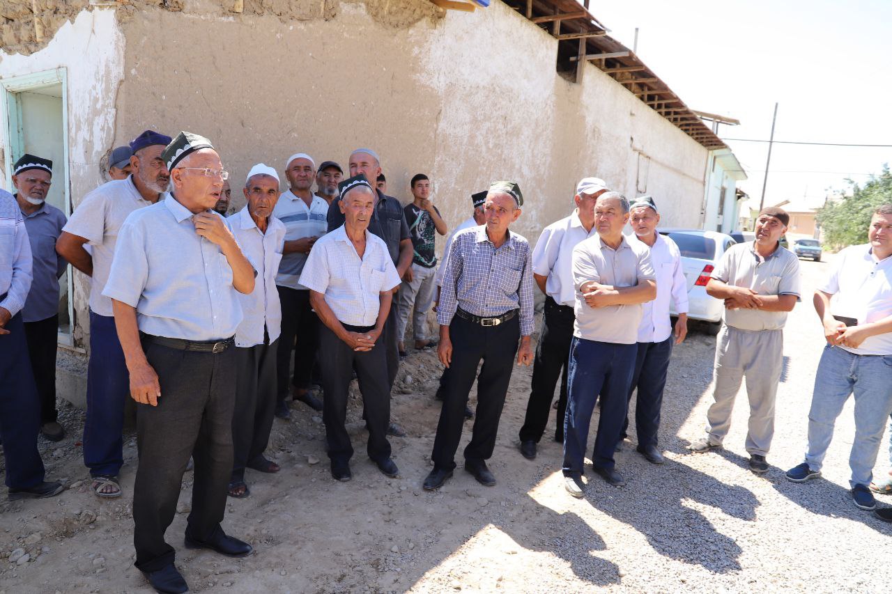 Бугун туман ҳокими Асадулло Нажмиддинов мазкур жараённи кўздан кечириб, аҳоли вакиллари билан суҳбатлашди. Суҳбат давомида давлат томонидан яратиб берилаётган шароитларга яраша маҳалла нуронийларига хонадонлари атрофларини, деворларини ободонлаштириш юзасидан келишиб олинди.