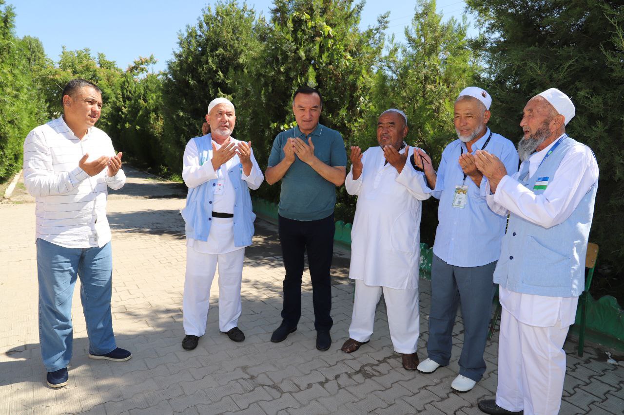 Бугун уларнинг яна бир қисми тумандаги 1-сонли касб-ҳунар мактабида туман ҳокими А.Нажмиддинов бошчилигида туман ҳокимлиги вакиллари, яқинлари томонидан кутиб олинди. Дуога қўл очган ҳожилар юртга тинчлик, тараққиёт, элга омонлик тиладилар.
