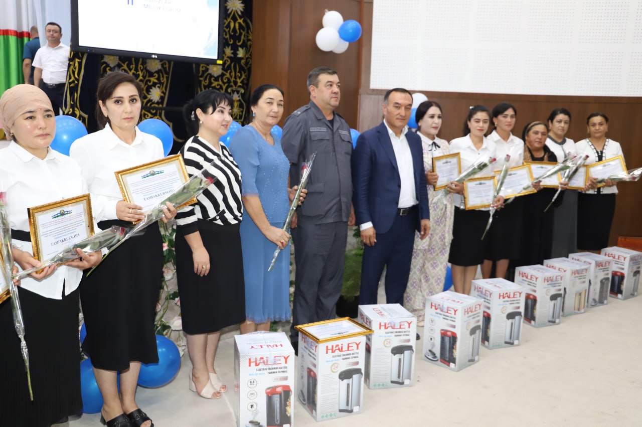 Тадбирда намунали фаолият юритган умумтаълим мактабларининг ўқитувчилари ҳамда мактабгача таълим ташкилотлари ходимларининг меҳнатлари эътироф этилиб, эсдалик совғалари топширилди.
