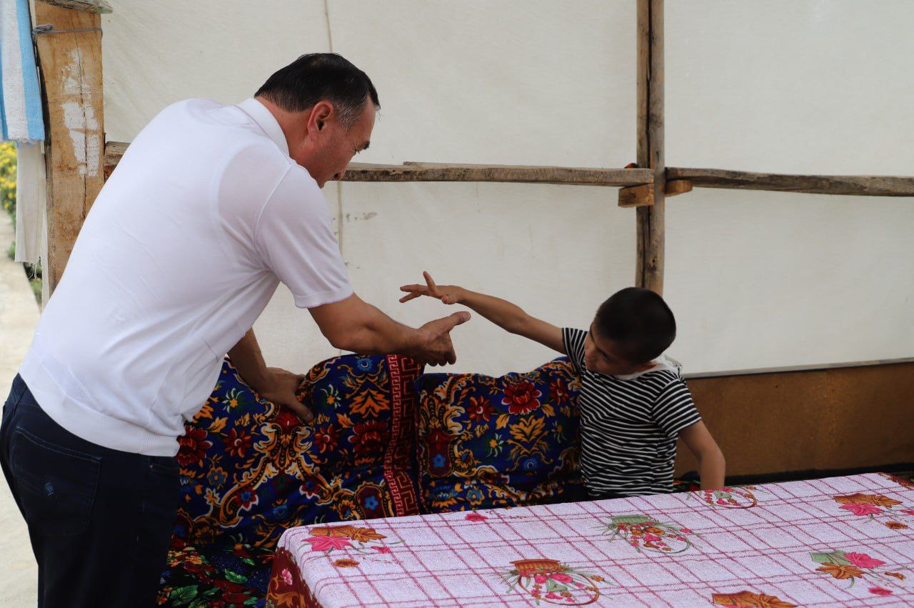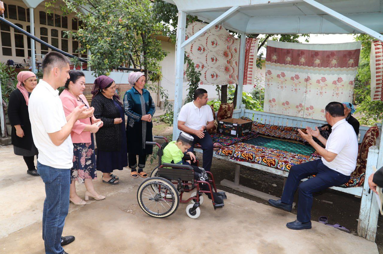 Бугун ҳам туман ҳокими А.Нажмиддинов, туман прокурори Қ.Ахмаджанов, туман ИИБ бошлиғи Р.Якуббаев, туман ҳокимининг хотин-қизлар ишлари бўйича ўринбосари Н.Абдурахманова ва туман “Инсон” ижтимоий хизматлар маркази директори У.Рахматуллаевлар 5 нафар ногиронлиги бўлган шахсларга ногиронлик аравачаси ва озиқ-овқат маҳсулотларини топширишди.