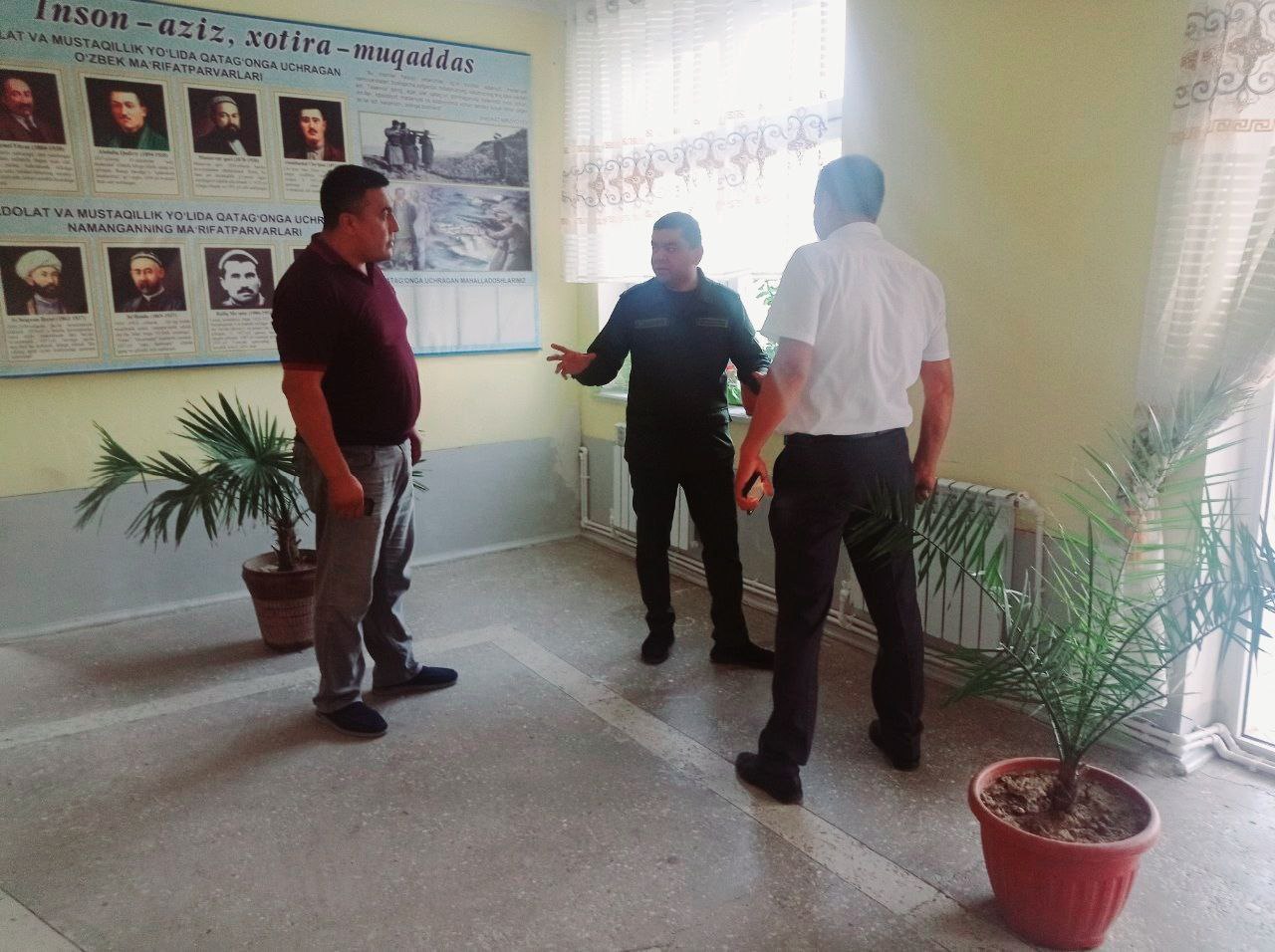 Бугун туман прокурори, 2-сектор раҳбари Қобилжон Аҳмаджонов ҳамда туман Иқтисодиёт ва молия бўлими бошлиғи Бекмирза Боймирзаевлар 2-,17-, 58-умумтаълим мактабларининг исситиш тизимларида бажарилган ишларнинг сифатини ўргандилар. Аниқланган камчиликларни бартараф этиш юзасидан кўрсатмалар бердилар..