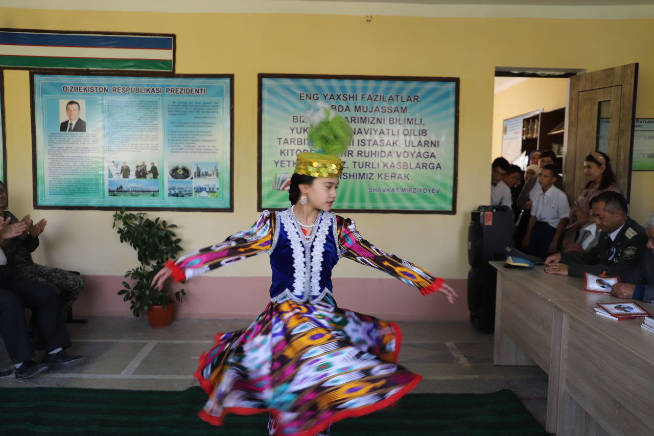 Мактаб ўқувчилари Ватан, тинчлик хақида шеър, қўшиқлар айтдилар, инглиз ва рус тилларида табриклар эшиттирдилар, рақслар ижро этиб, тадбирга янада файз киритдилар.