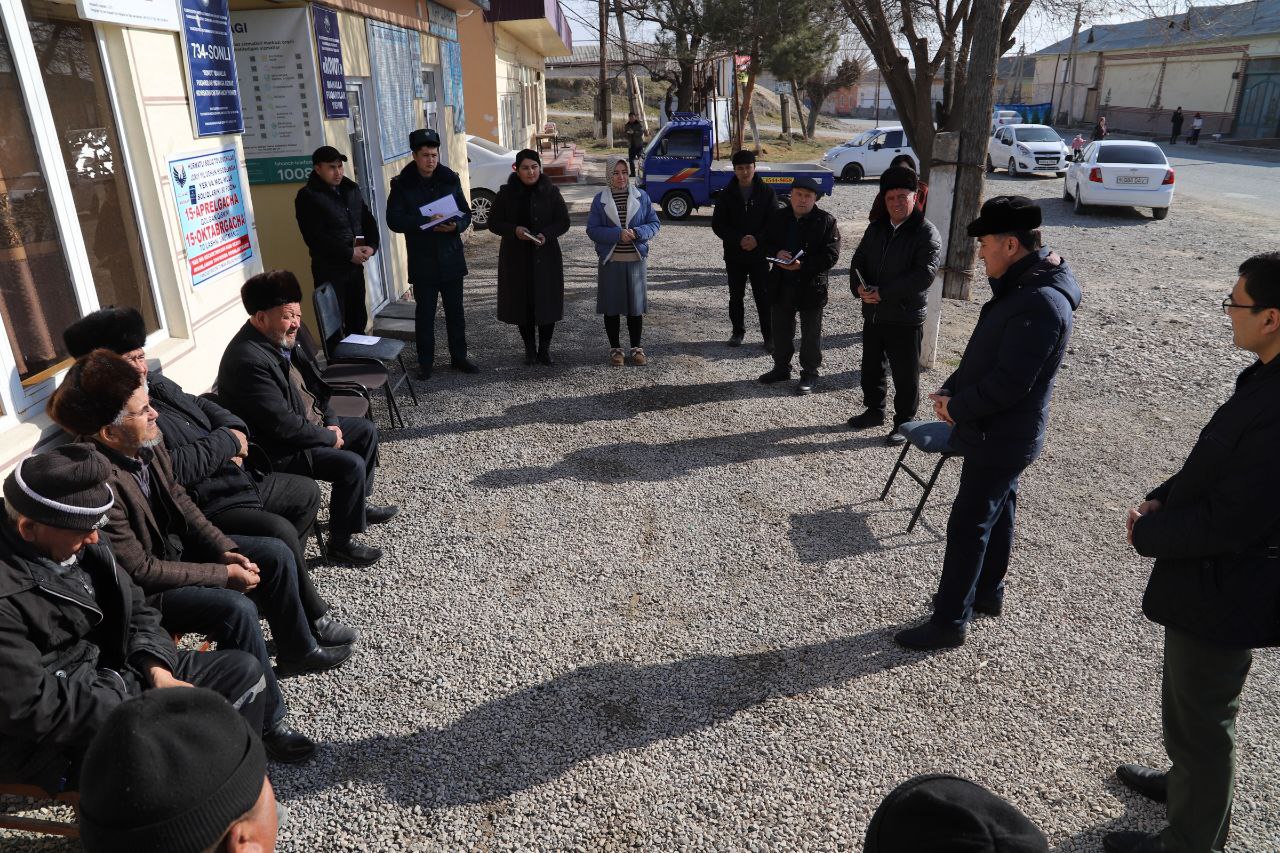 Бугун туман ҳокими Асадулло Нажмиддинов, туман прокурори О.Раҳмонов маҳалла еттилиги, фаоллари ва нуронийлари билан учрашди.