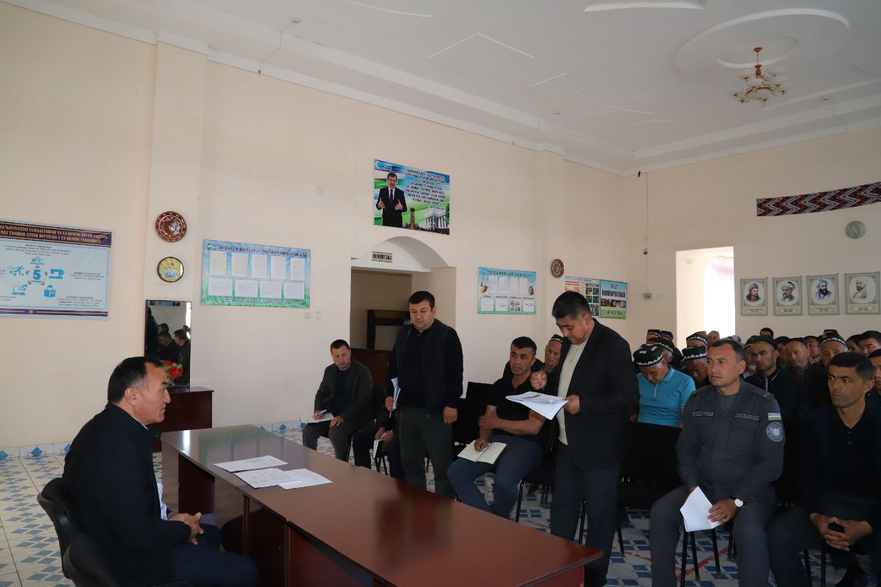 Йиғилишда маҳалла еттилиги, Солиқ инспекцияси, қишлоқ хўжалигига хизмат кўрсатувчи ташкилот раҳбарлари, агрофирма раислари, сув хўжалиги вакиллари ҳамда ҳудуддаги фермер хўжаликлари раҳбарлари иштирок этдилар.