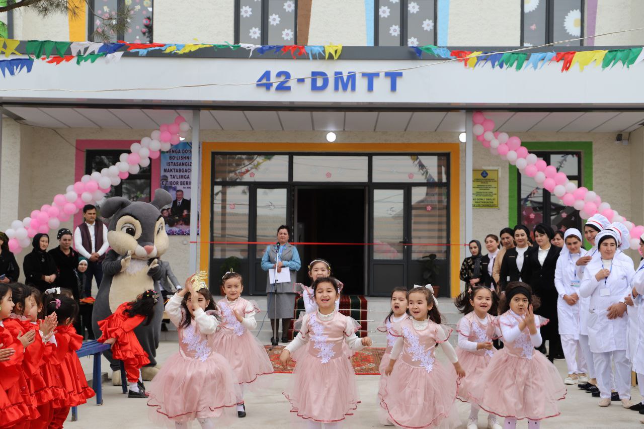 75 ўринли 42-мактабгача таълим ташкилотининг маънан эскирган биноси ўрнига 4 млрд. 800 млн. сўм маблағ эвазига 120 ўринли, уч қаватли, замонавий, муҳташам боғча қад ростлади.