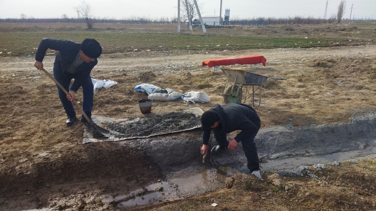 Айни кунларда ҳам "Гулшан-Жасур-Ғайрат" ҳамда "Саид Барака-Доли Сатторов" агрофирмалари худудларидаги фермер хўжаликларида ички ариқларни бетонлаш, лоток ётқизиш, мавжудларини тозалаш, дарахтларга шакл бериш ишлари амалга оширилмоқда.