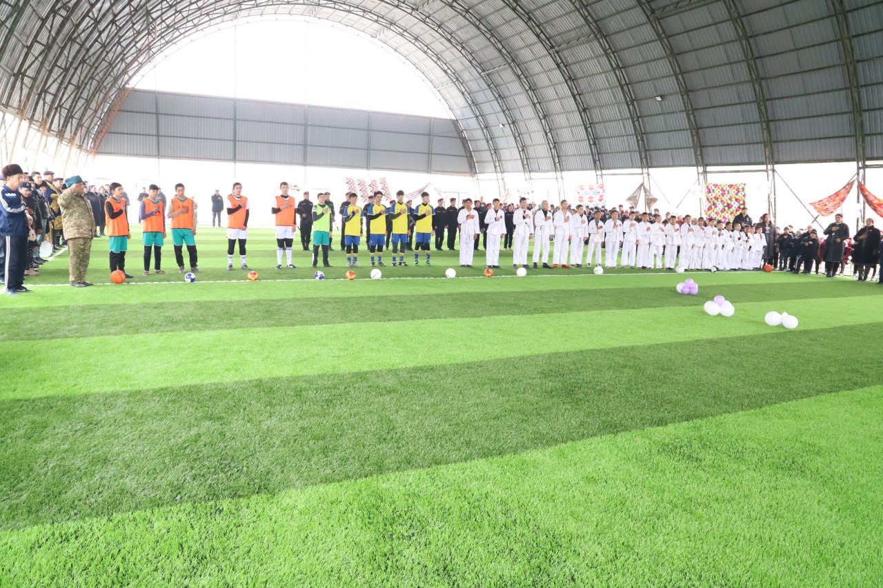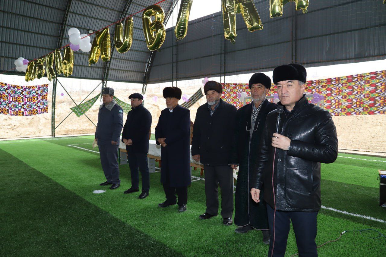 Бугун туман ҳокими Асадулло Нажмиддинов, туман Ички ишлар бўлими бошлиғи Ривожиддин Якуббаев, туман прокурори Қобилжон Аҳмаджановлар янги спорт иншоотини фойдаланишга топширдилар.