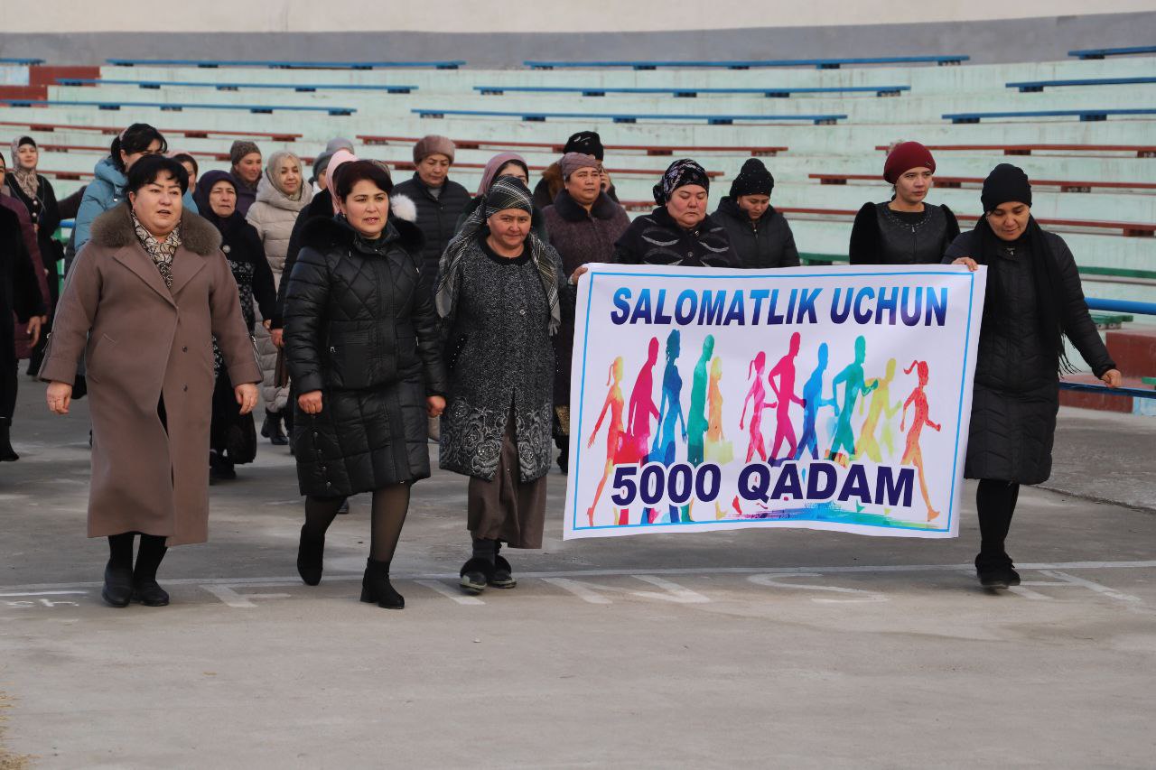 Тадбир эрта тонгда “Шоҳрух” спорт мажмуасида соғлом турмуш тарзини тарғиб қилувчи “Саломатлик учун 5000 қадам” марафони билан бошланди.