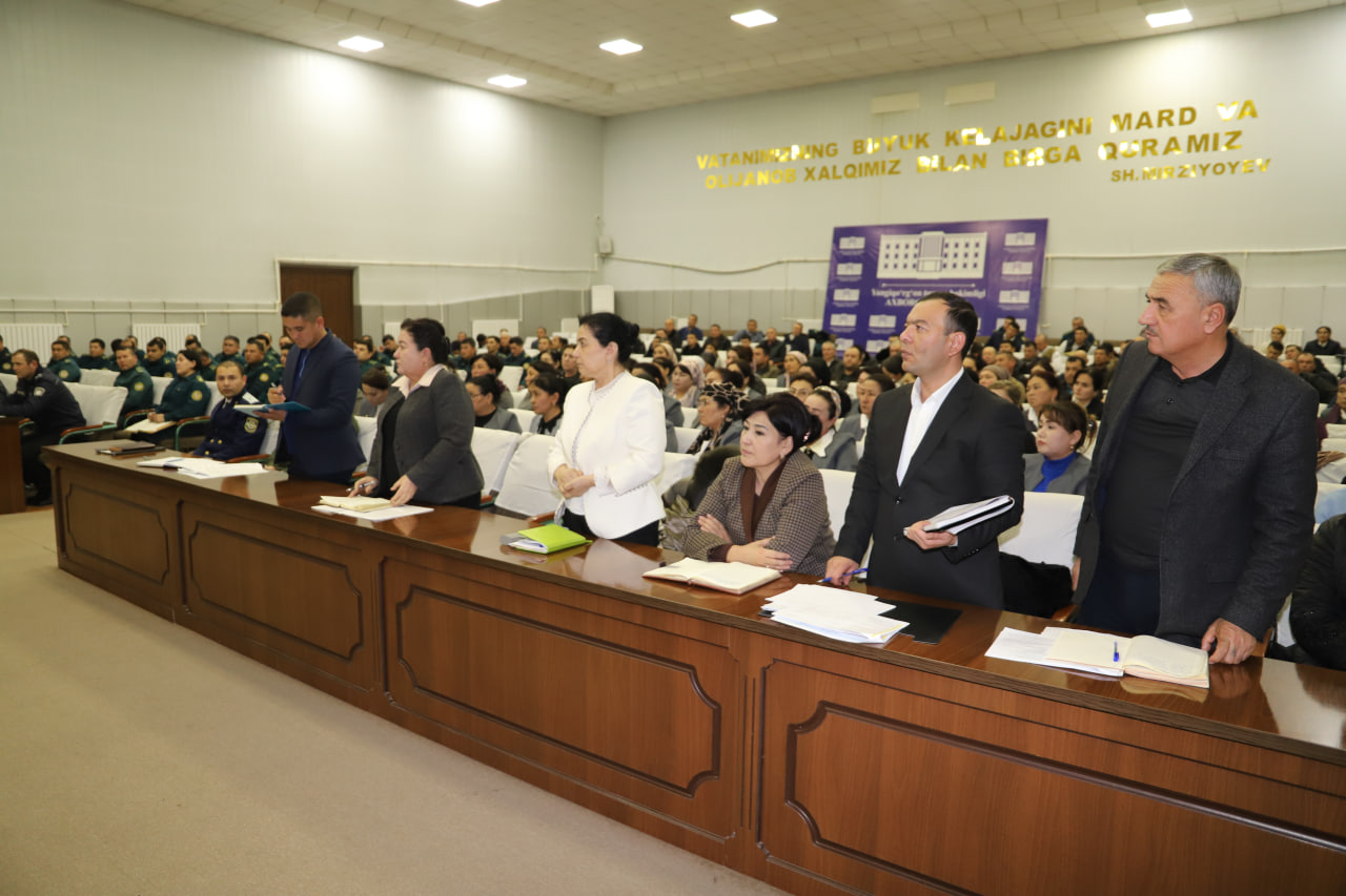 Унда туманда 2023 йилнинг 12 ойида ҳуқуқбузарликлар профилактикаси ва жиноятчиликка қарши кураш аҳволи, бу борада ҳуқуқни муҳофаза қилувчи органлар ва жамоат ташкилотларининг ўзаро ҳамкорлиги масалалари муҳокама қилинди.