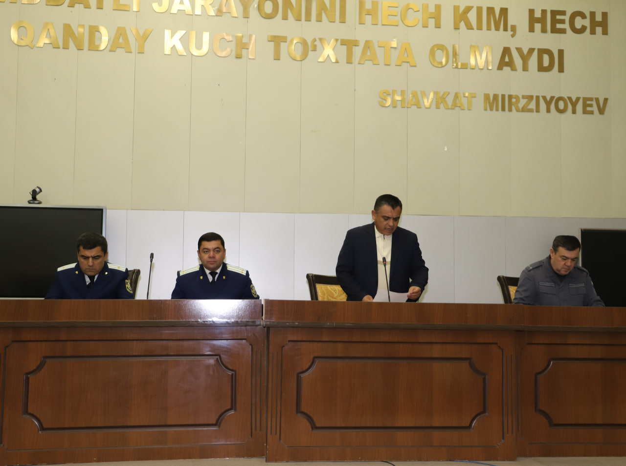 Йиғилишда ҳуқуқбузарликлар профилактикаси ва жиноятчиликка қарши кураш ҳолатига танқидий баҳо берилди ҳамда мутасадди раҳбарларнинг тушунтириш ва изоҳлари эшитилди.