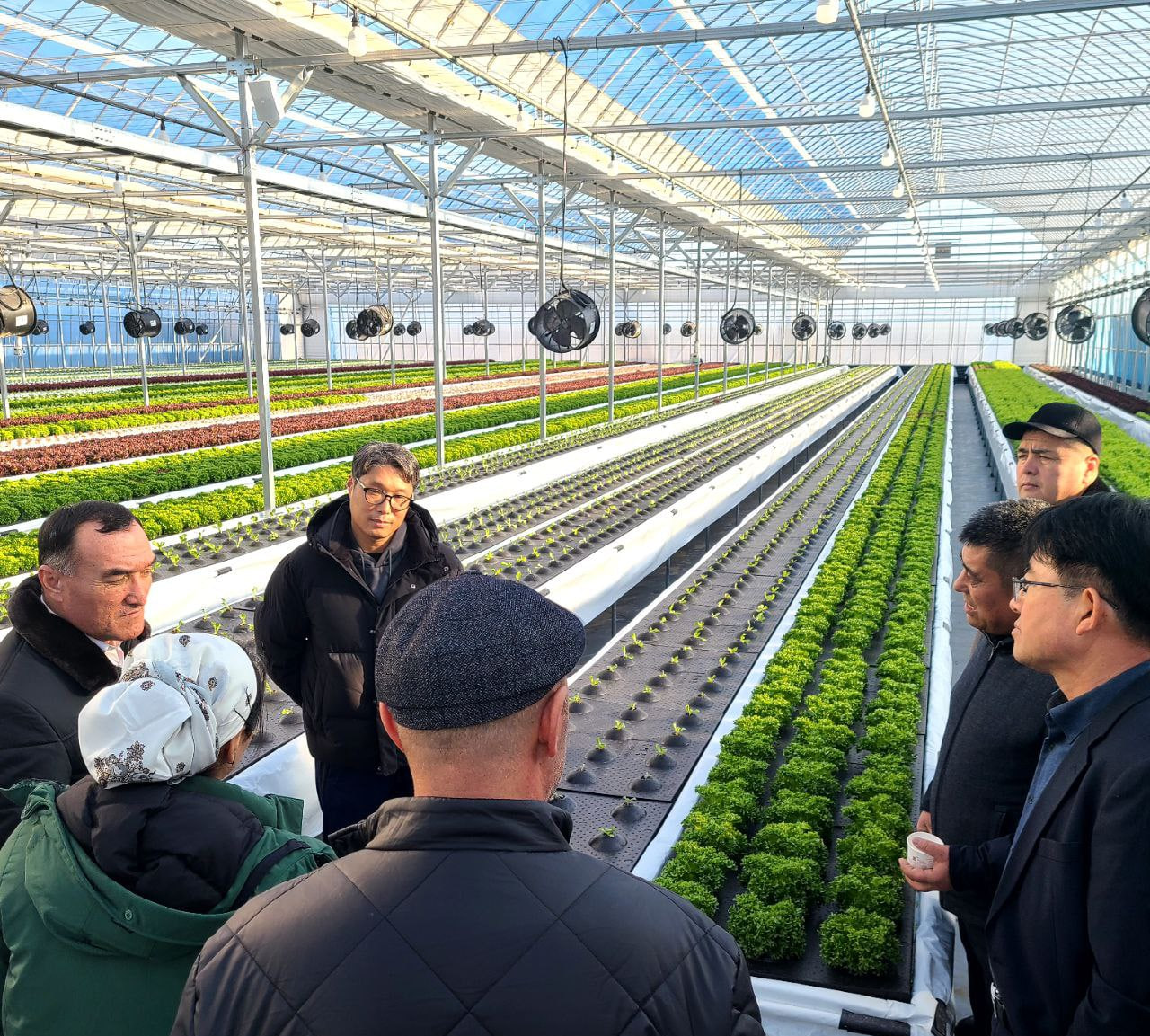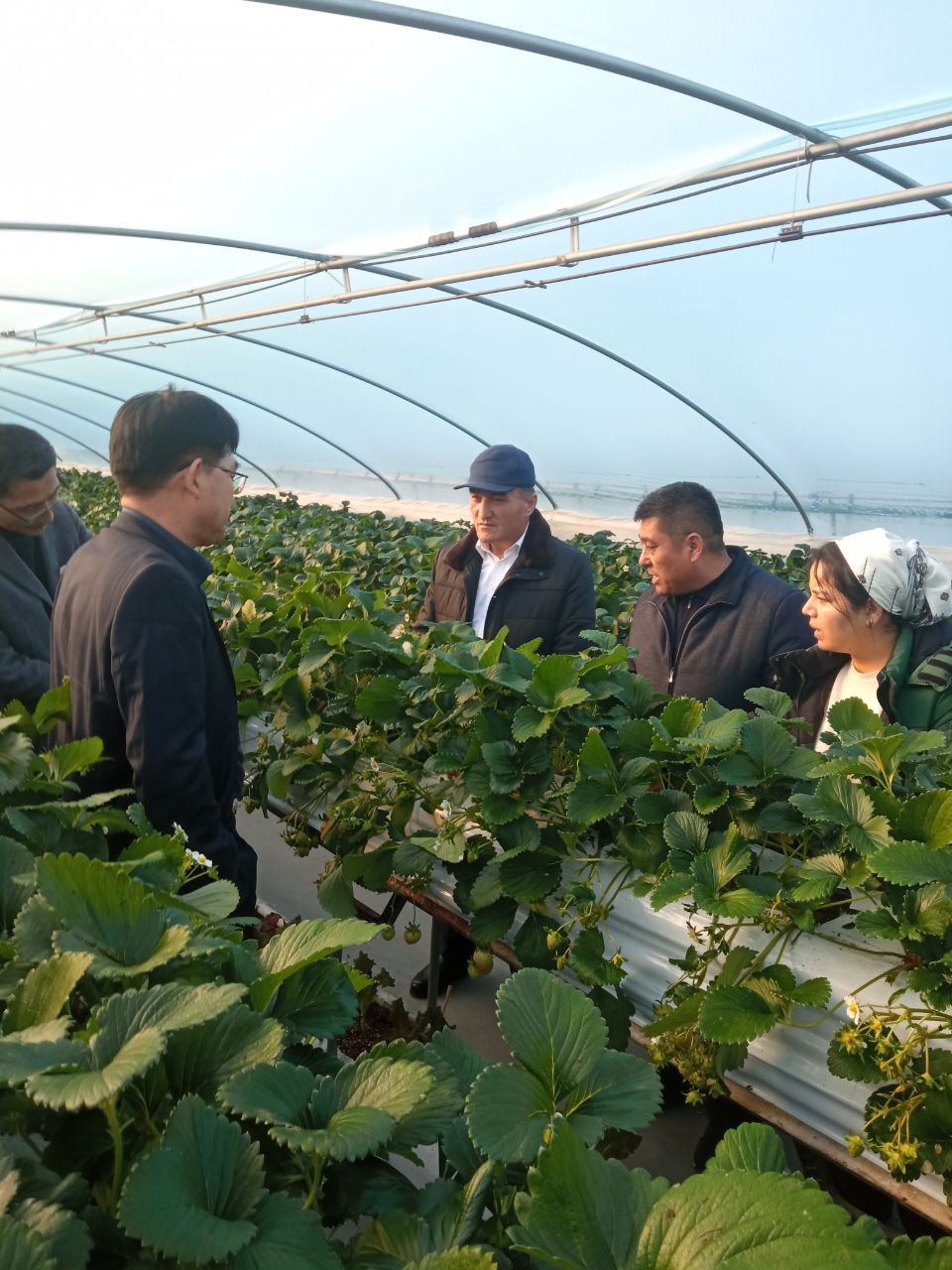 Шундан сўнг қишлоқ хўжалиги технологиялари маркази, Ақлли фермер хўжалигига, помидор етиштириладиган Olaon Agricultural Company Co., Ltd, сабзавот етиштирадиган ақлли иссиқхона, шунингдек, қулупнай етиштириладиган фермаларда амалга оширилаётган ишлар билан танишдилар.