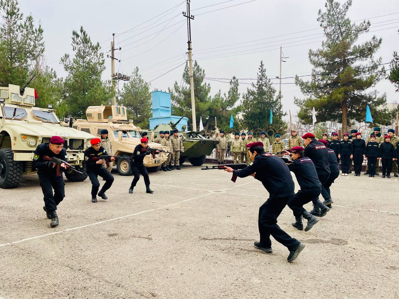 Тадбирнинг биринчи қисмида 45-сонли умумтаълим мактабида ҳарбий хизматчилар томонидан ҳарбий техникалар, қурол яроғлар кўргазмаси, аскарлар ҳамда ёшларнинг чиқишлари намойиш қилинди. Унда ҳарбий хизматчилар, нуронийлар, ёшлар вакиллари, маҳалла фаоллари ва имом-хатиблар иштирок этдилар.