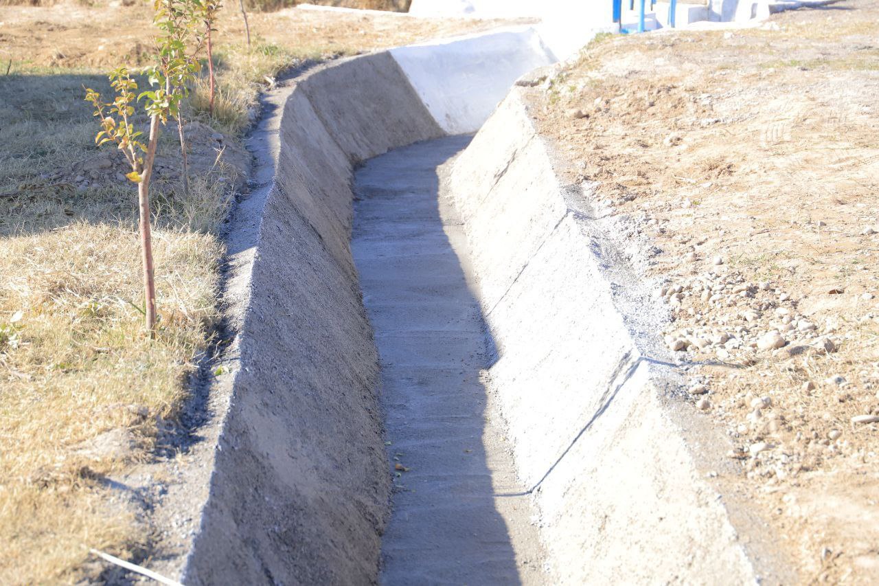Бугунги кунга туман бўйича 500 метр масофада дала ички ариқлари бетонлаштирилди.