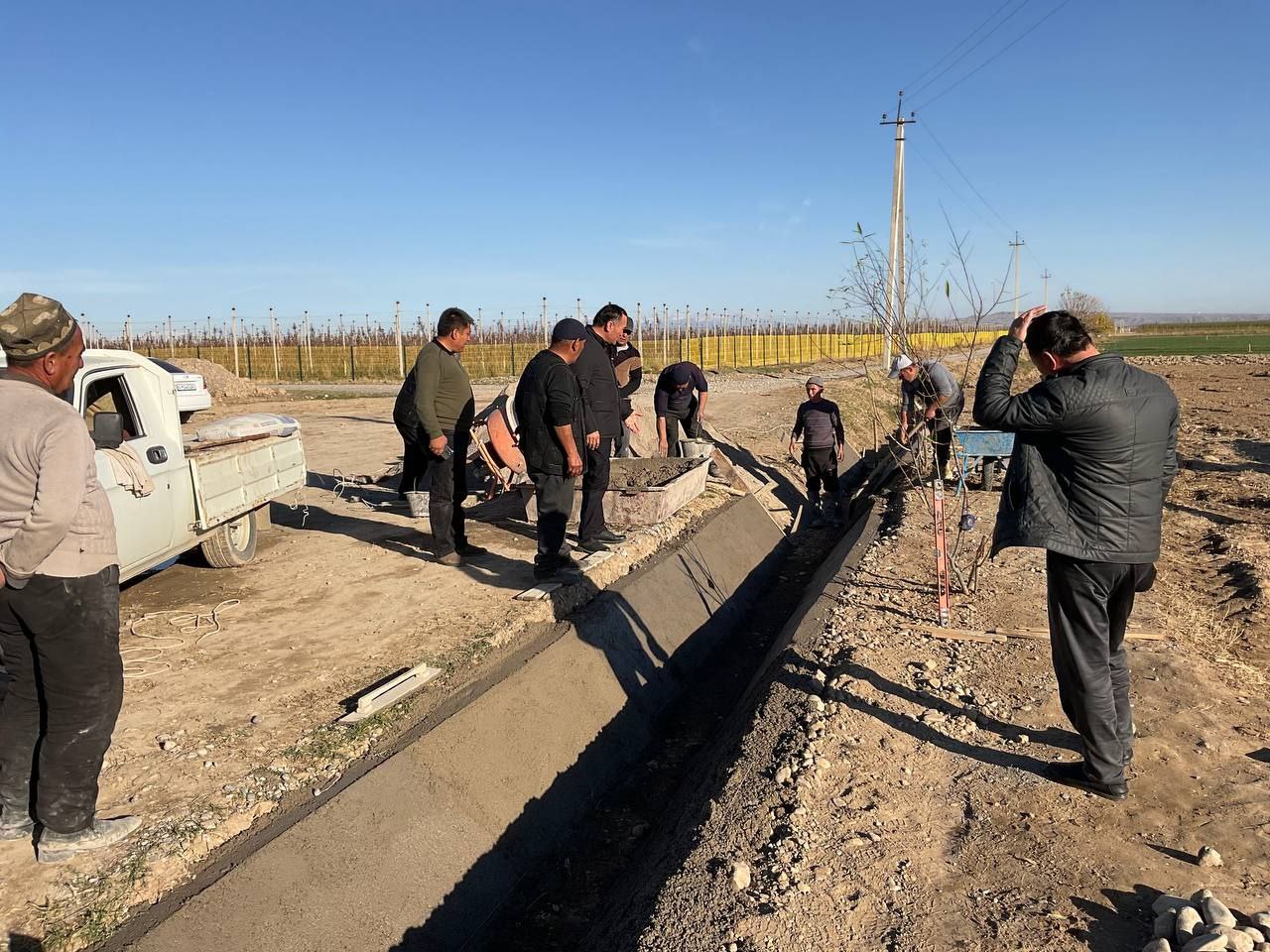 Хусусан, "Туркистон Садоқат Бахт Иқболи" агрофирмасидаги "Илхом Бекзод Шерзод" фермер хўжалигидаги 100 метр узунликдаги ички ариқ четлари бетонлаштирилди.