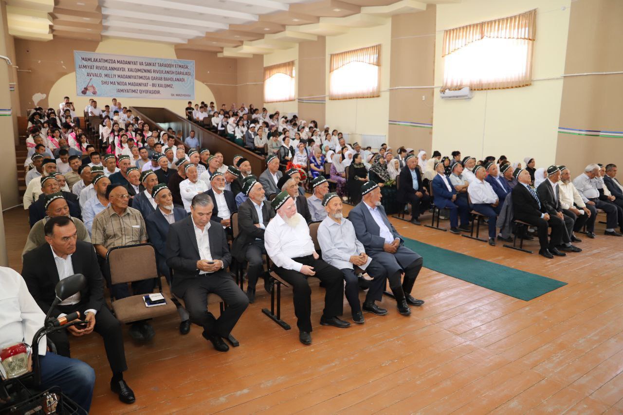 Тадбирда Олий Мажлис сенати аъзоси, сенатор, вилоят "Нуроний" жамғармаси бошлиғи И.Нажмиддинов, вилоят "Нуронийлар жамоатчилик кенгаши" аъзоси, истеъфодаги генерал У.Шамсиев, Янгиқўрғон туман ҳокими, "Нуроний" жамғармаси Васийлик кенгаши раиси А.Нажмиддинов, туман ҳокимининг маслаҳатчиси, "Нуроний" жамғармаси раиси М.Дедабоев ҳудуддаги кексалар, уюшмаган ёшлар ҳамда 16-,26-,63- мактаб битирувчилари иштирок этишди.