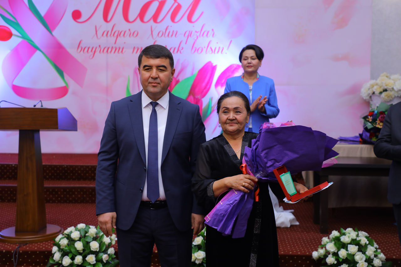 Жамият ҳаётида фаоллик ва ташаббускорлик кўрсатган, кўп йиллик самарали меҳнати билан ёш авлод таълим-тарбиясига ҳисса қўшган, уларни миллий истиқлол ғоясига содиқлик руҳида тарбиялаш борасида ибратли ишларни амалга ошириб келгани учун 10-Давлат ихтисослашган умумтаълим мактаби директори ўринбосари Дилоромхон Исомиддинова Хотин-қизлар байрами арафасида “Мўътабар аёл” кўкрак нишони билан тақдирланди.