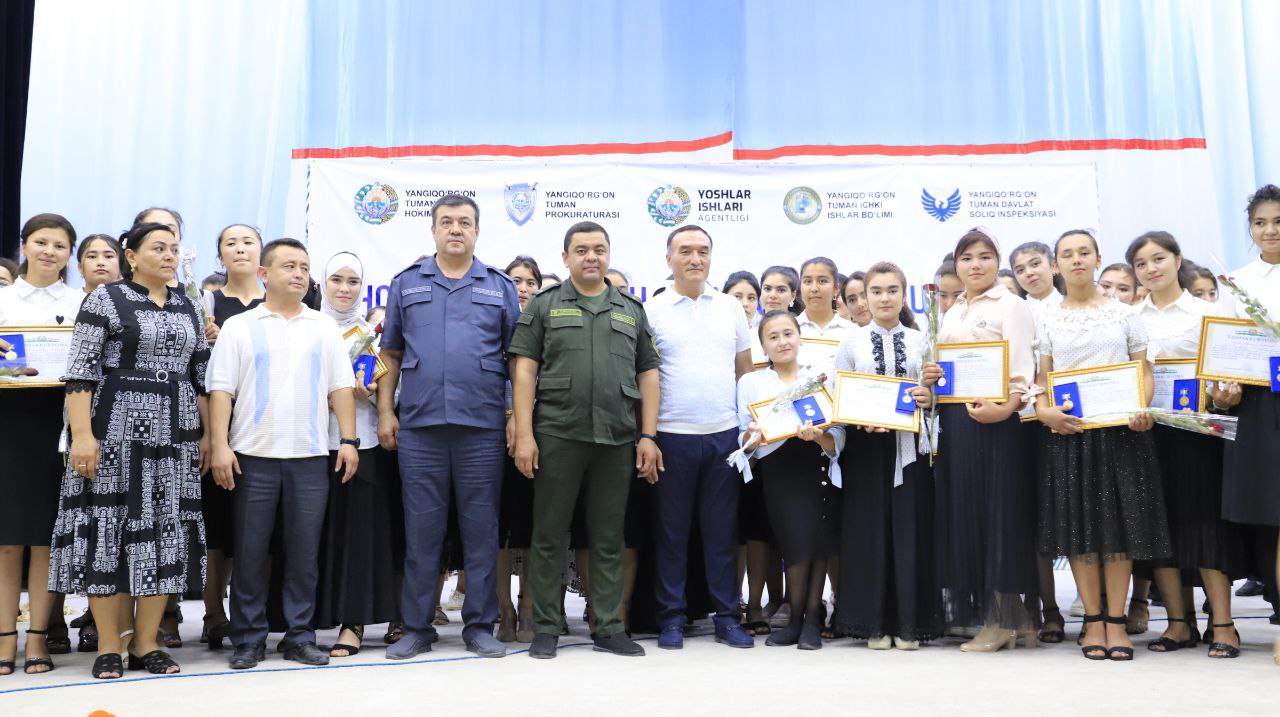 Бугун туман Маданият марказида йиғилган умумий ўрта таълим мактаби битирувчилари бутун умрга хотираларида муҳрланиб қоладиган тантанали маросимда иштирок этдилар.