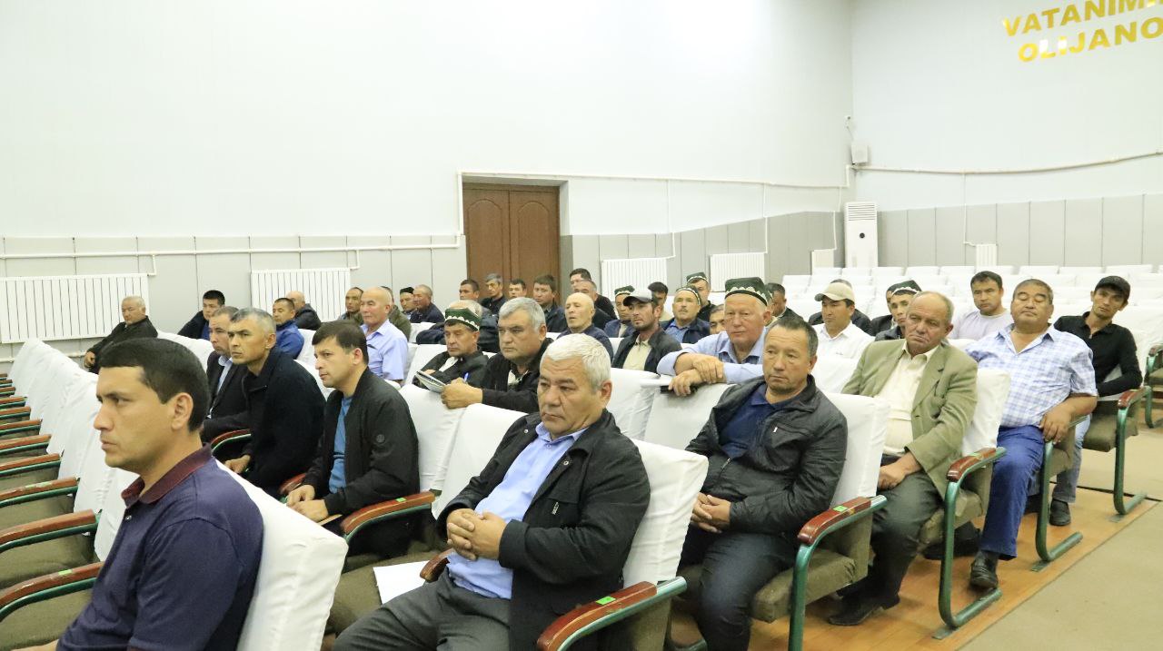 Йиғилишда, шунингдек, ғалла ўримига тайёргарлик кўриш, ғалладан ва эртаки экинлардан бўшаган майдонларга такрорий экинлар экиш, кластер ҳамда фермер хўжаликлари раҳбарлари томонидан оталиққа олинган 337 нафар ишсизларга буғдой, сомон пресси бериш, уларга ер майдонларини ажратиш бўйича белгиланган тартиблар ҳам тушунтирилди.