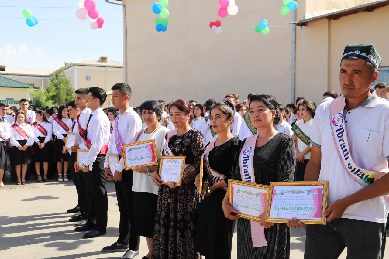 Шундан сўнг бир гуруҳ фаол, намунали устозлар ва битирувчиларга туман халқ таълими бўлими ва мактаб раҳбариятининг ташаккурномаси ҳамда эсдалик совғалари топширилди.
